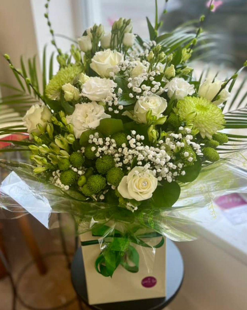 A fabulous collection of white and cream flowers make this the perfect gift. This bouquet will be hand delivered by the local florist.